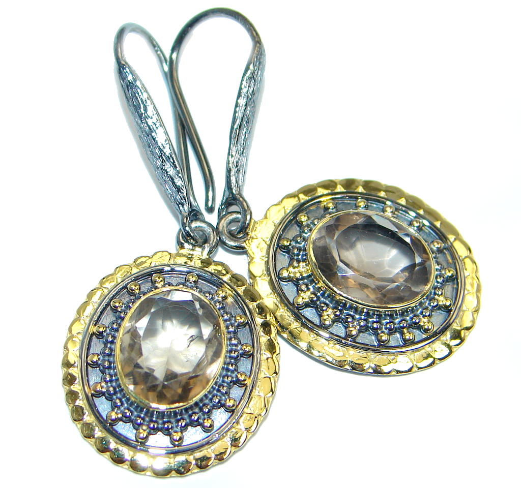 Long Smoky Topaz Gold plated over Sterling Silver handmade earrings