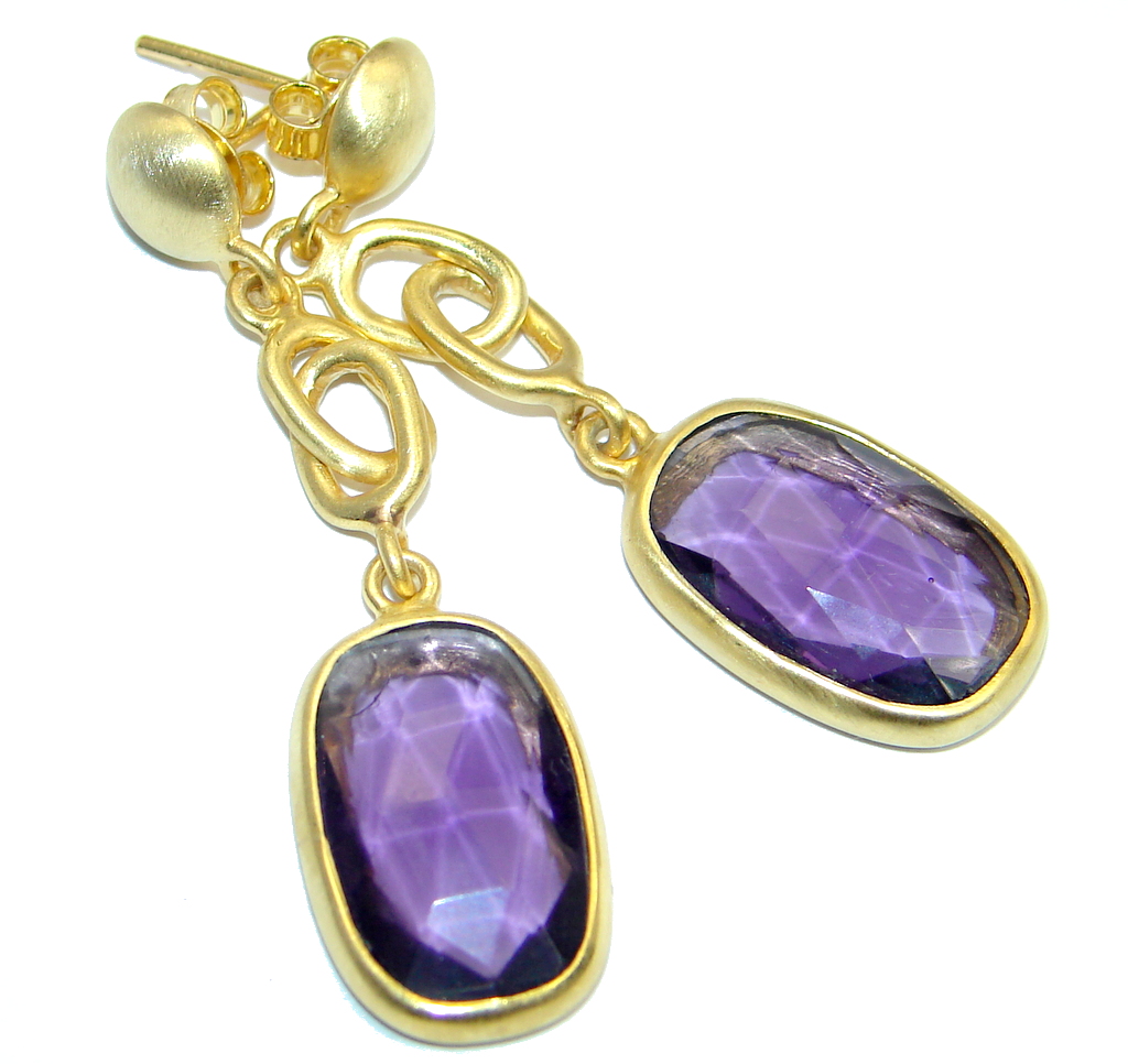 Perfect Natural Amethyst Gold plated over Sterling Silver handmade earrings