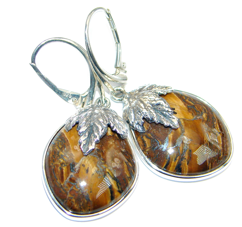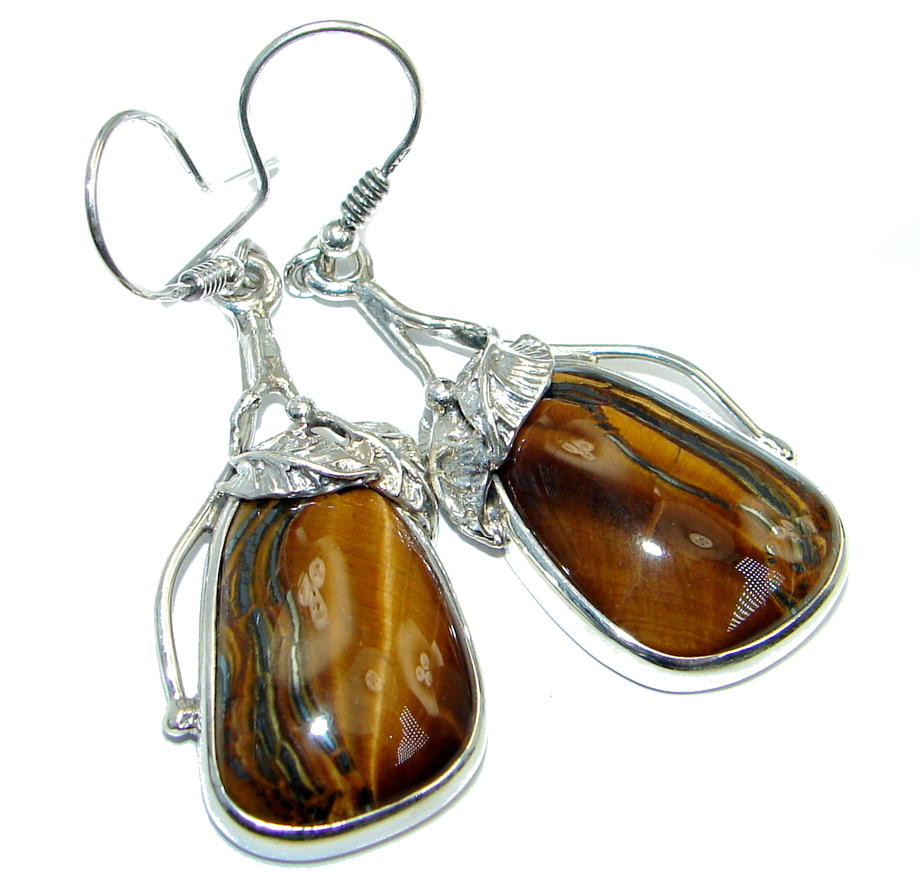 Genuine Golden Tigers Eye Oxidized Sterling Silver handmade Earrings
