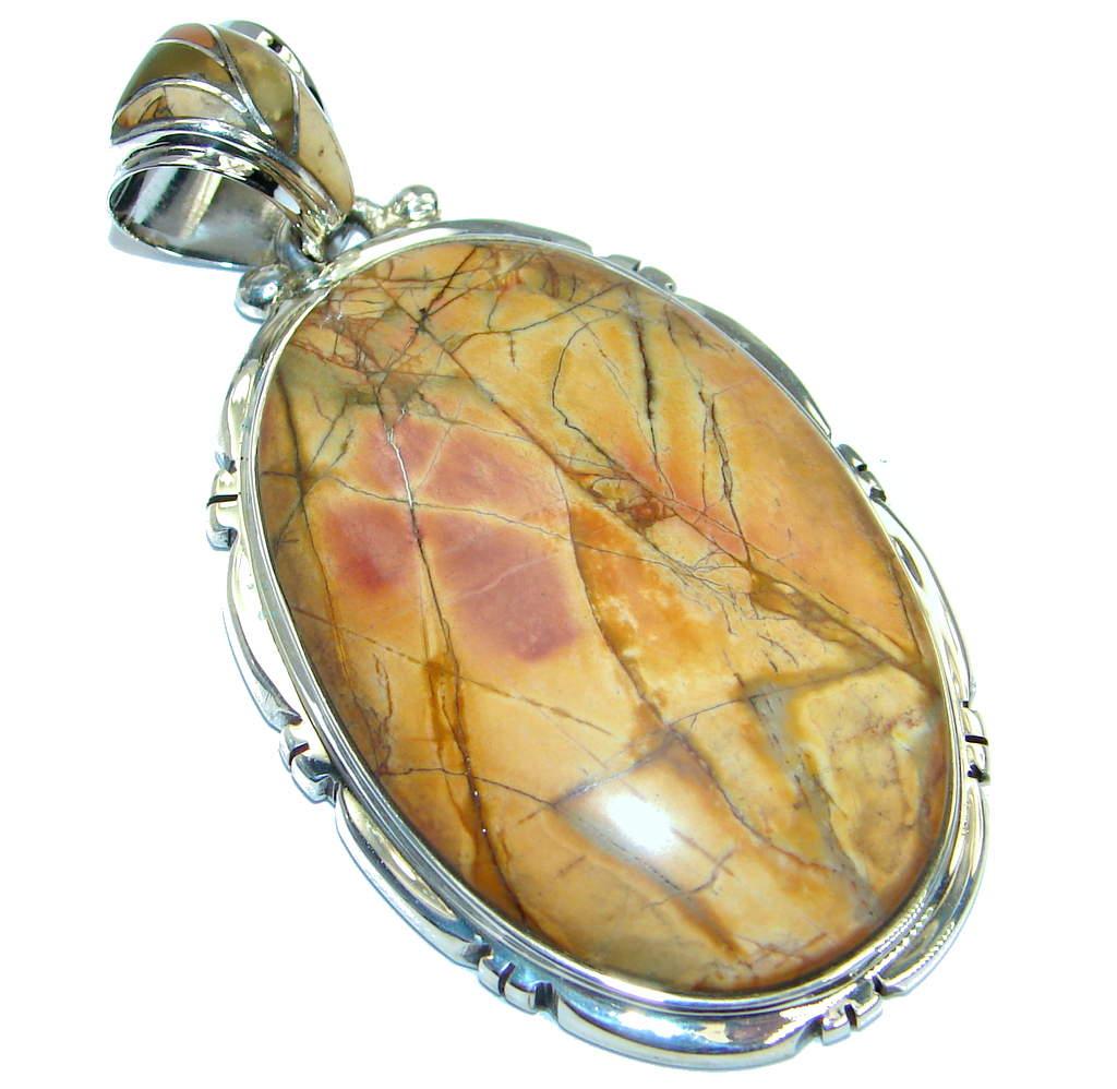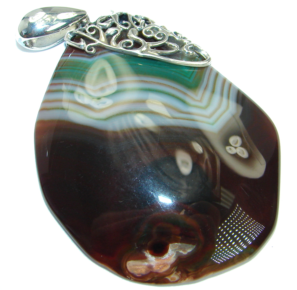 Huge Fine Art Natural color Agate Sterling Silver handmade Pendant