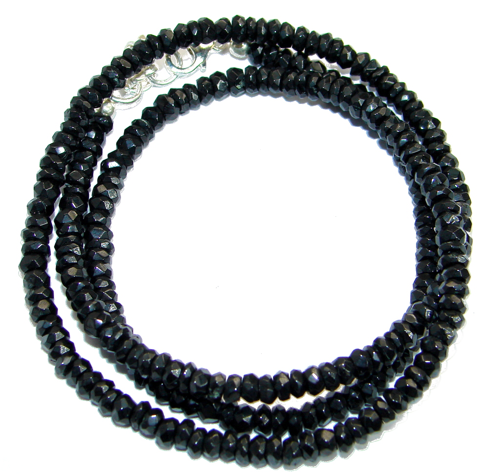 Simple genuine Onyx Beads Strand Necklace .925 Sterling Silver 18 inches necklace