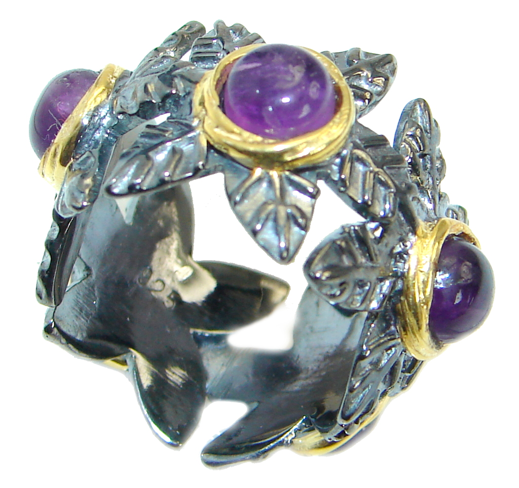 Unique Style genuine Amethyst Gold plated over .925 Sterling Silver ring; s. 5 1/2