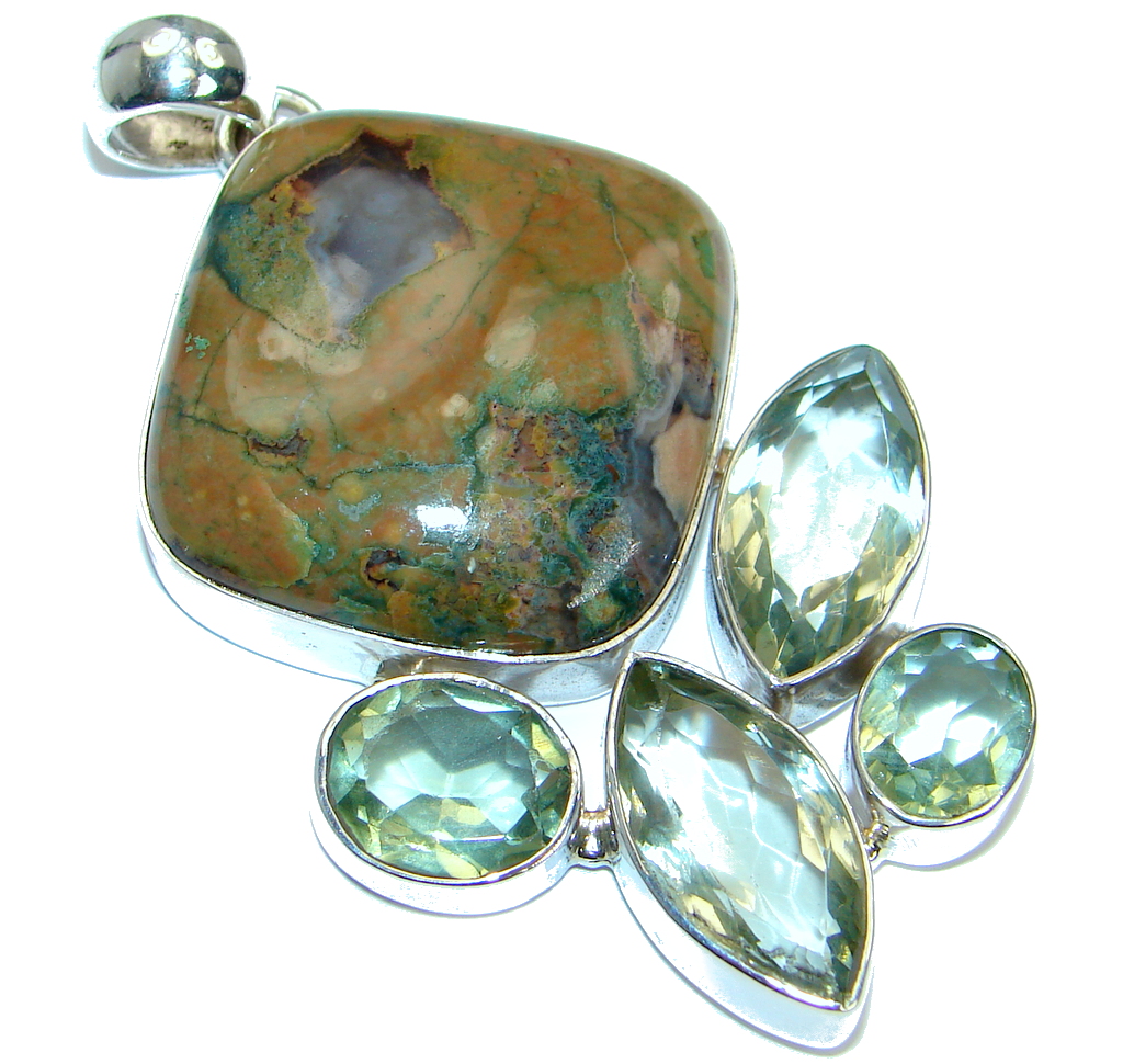 Exquisite Green Rainforest Jasper .925 Sterling Silver handmade Pendant