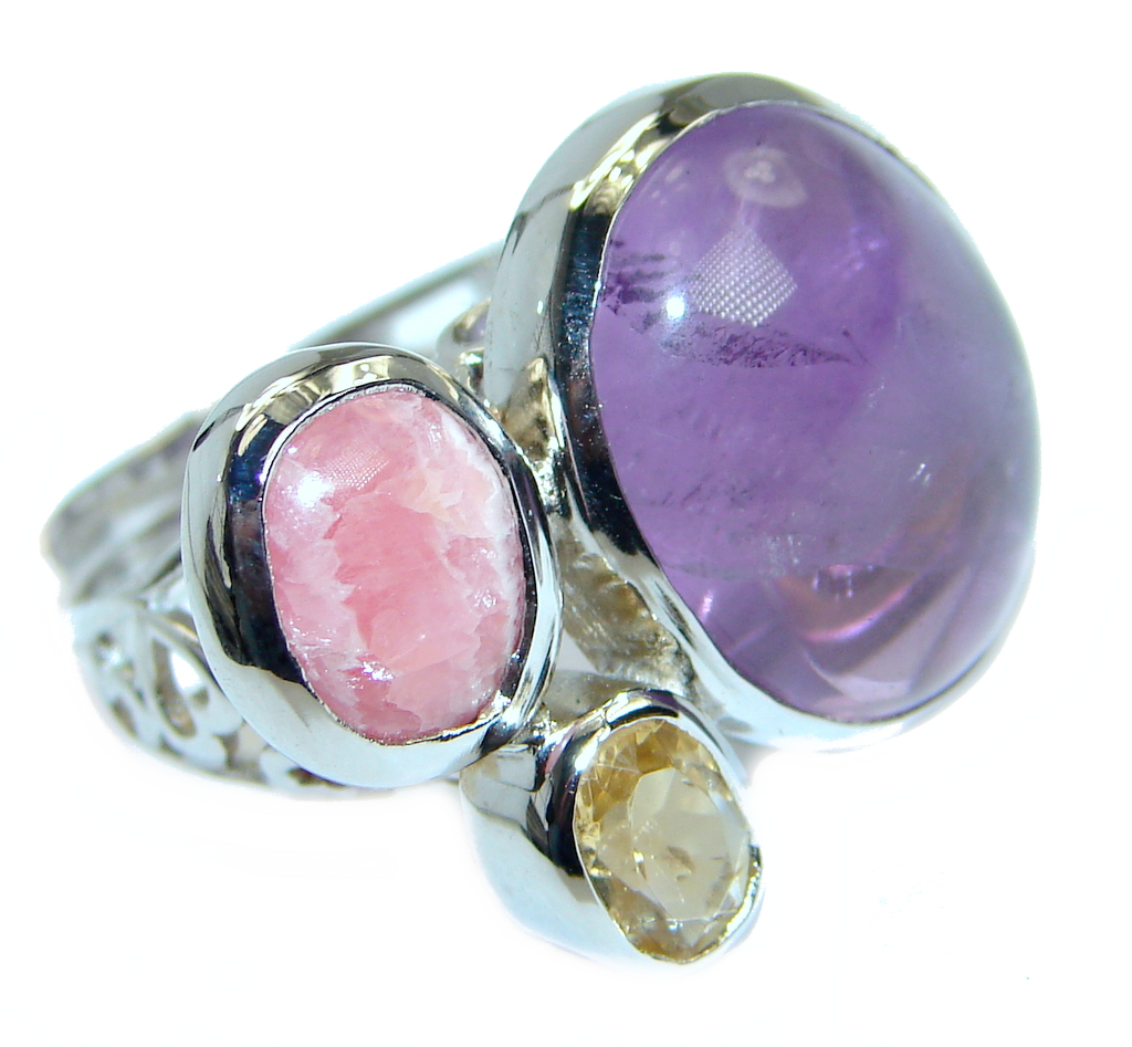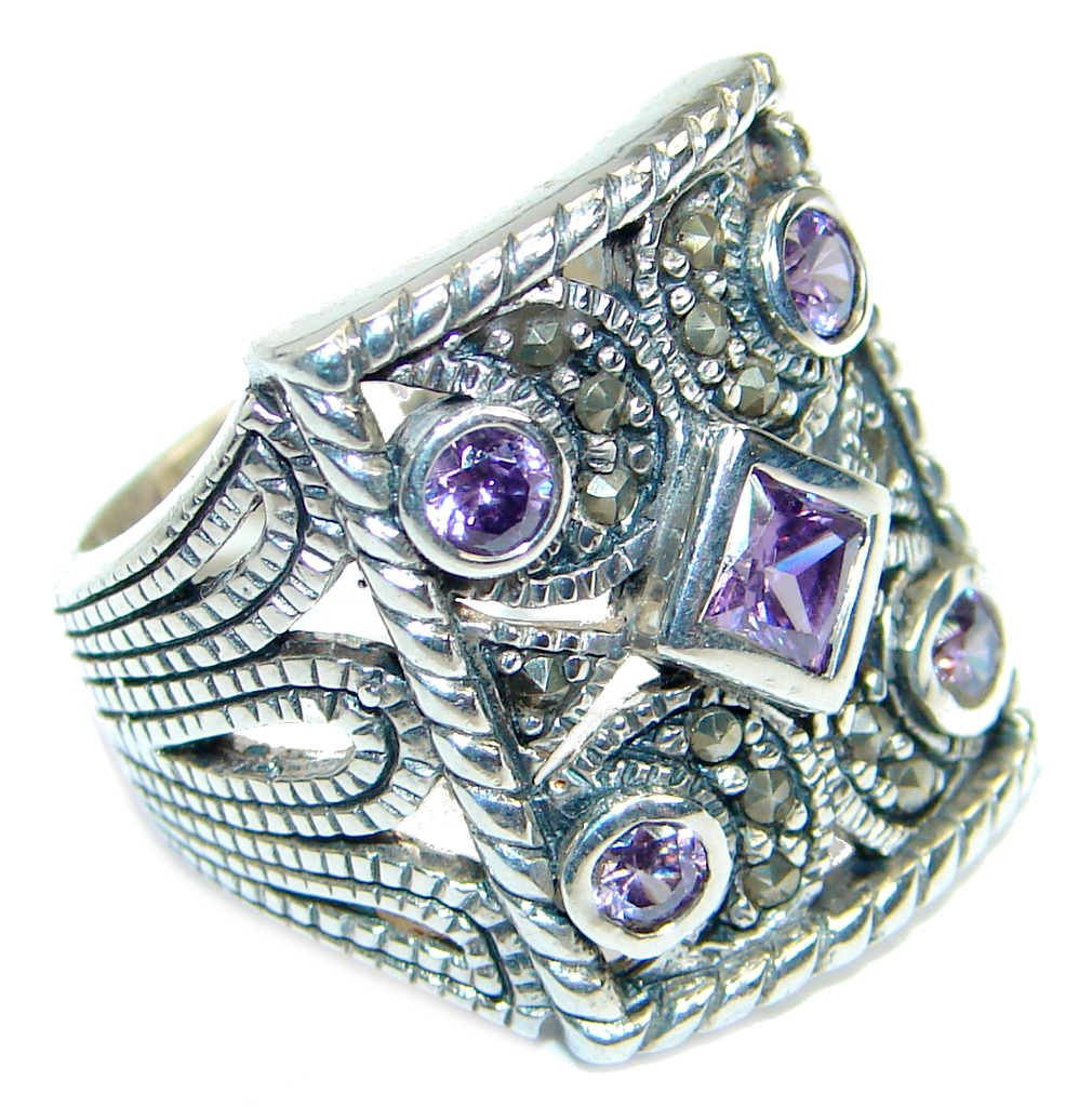 Unique Style genuine huge Amethyst Sterling Silver ring; s. 7 adjustable