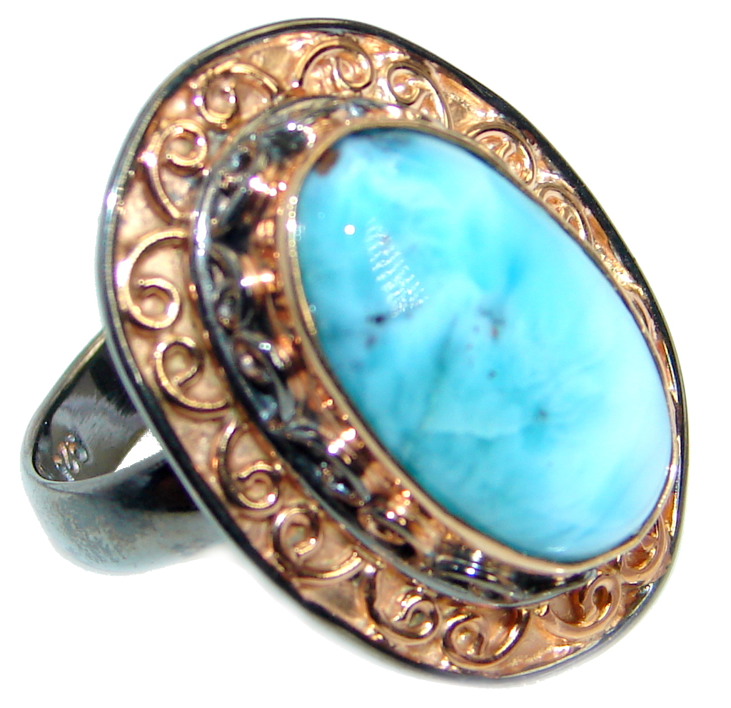 genuine Larimar Rose Gold plated over .925 Sterling Silver Ring s. 7 adjustable