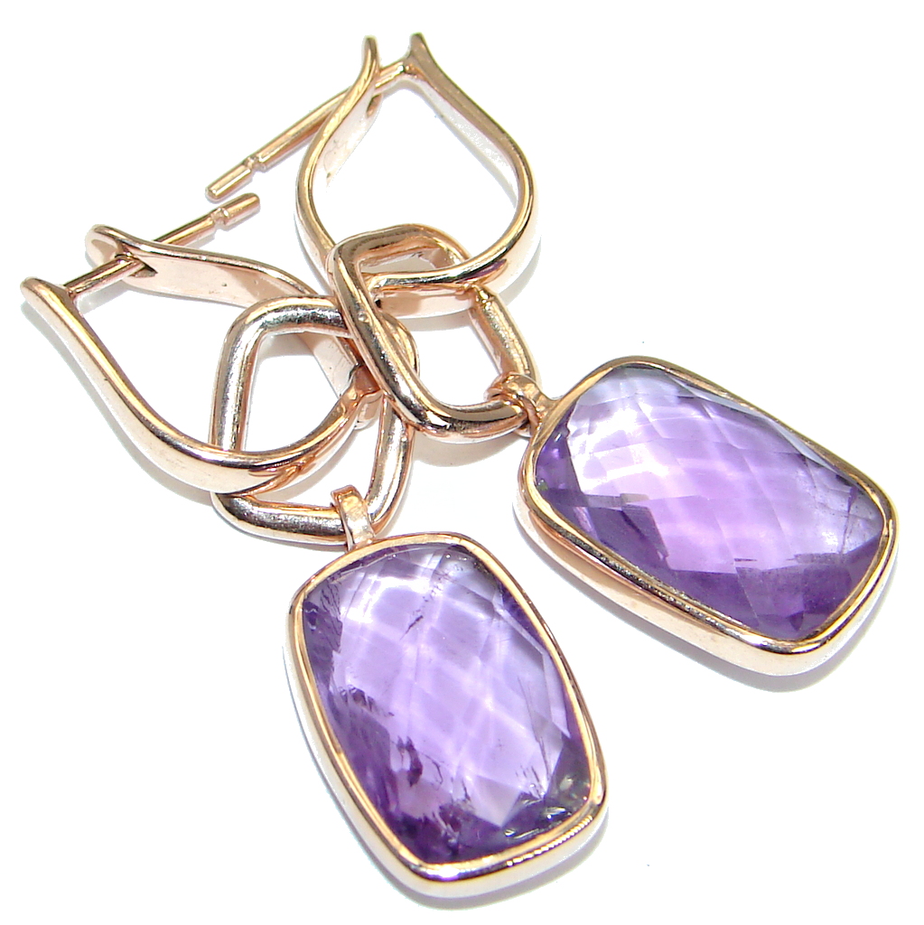 Genuine Pink Amethyst Rose Gold plated over .925 Sterling Silver handmade Earrings