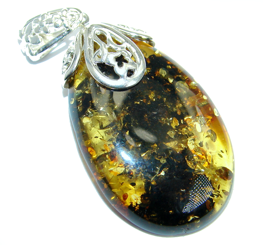 Great Design natural Baltic Amber Sterling Silver handmade Pendant