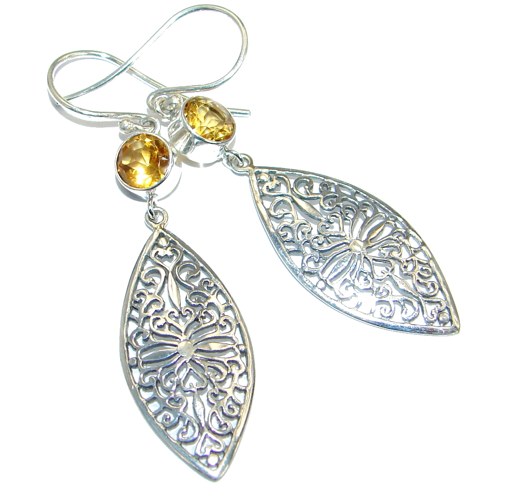 Stylish genuine Citrine .925 Sterling Silver handmade earrings