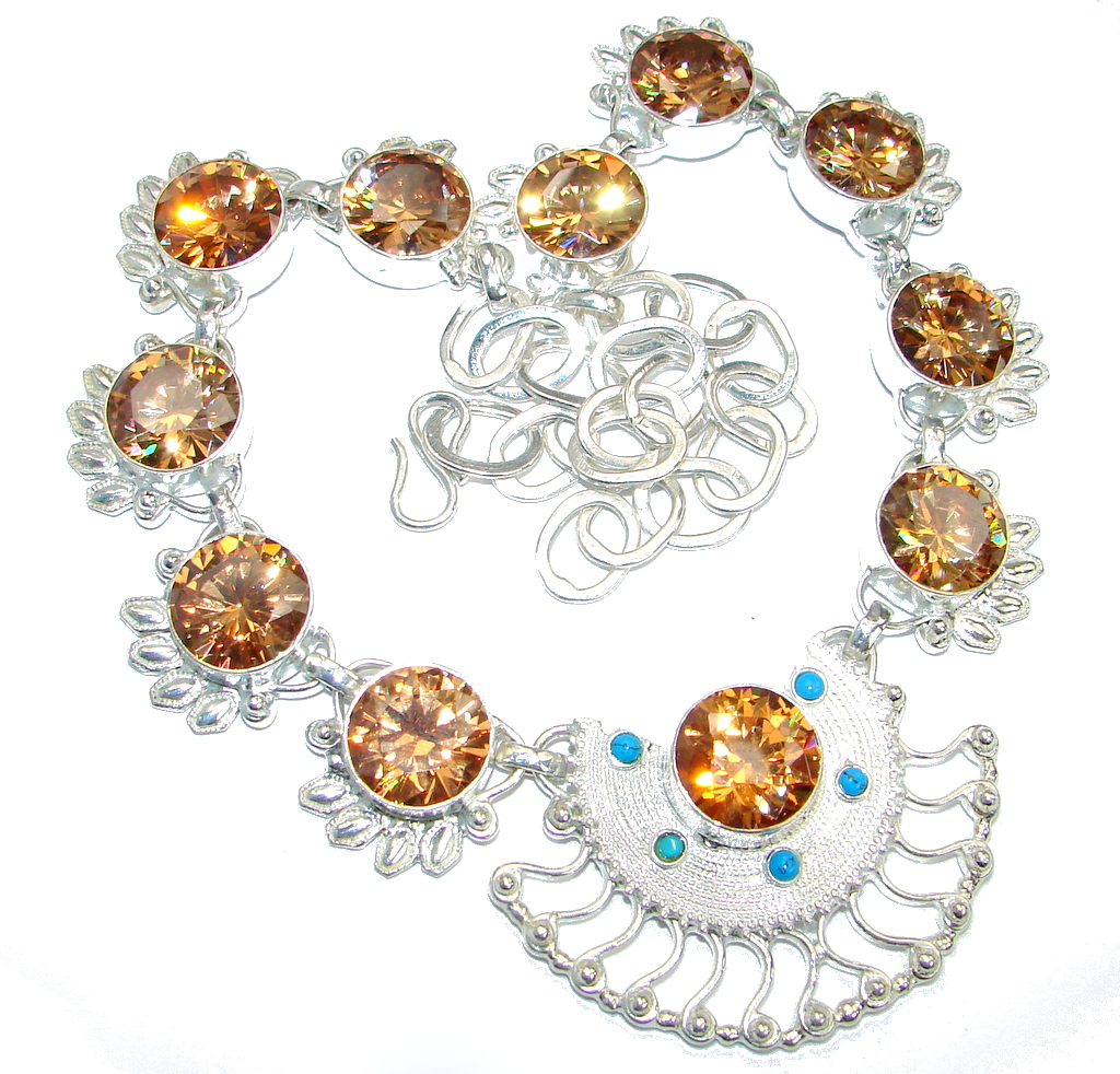 Chunky Beauty Cubic Zirconia Silver Tone handcrafted necklace