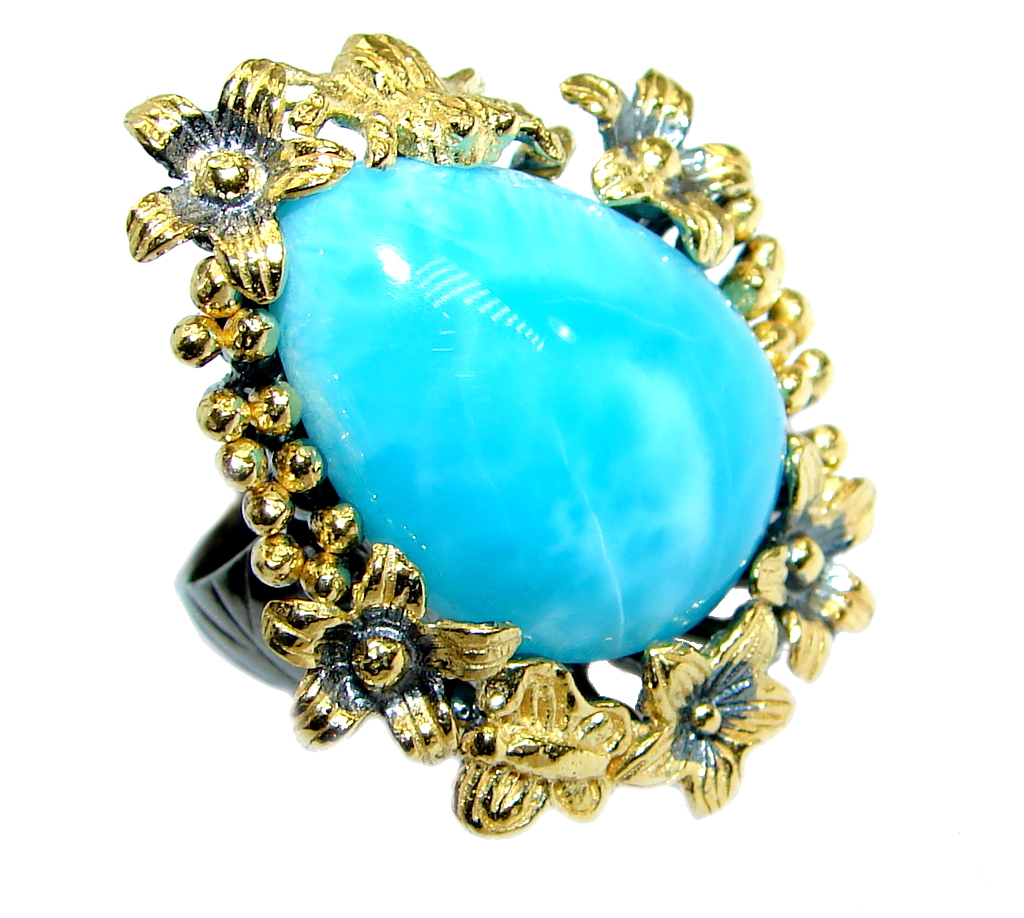 Flower Design Genuine Larimar .925 Sterling Silver handcrafted Ring s. 7 adjustable