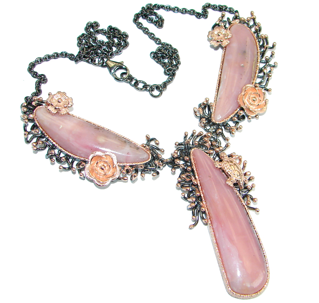 Bohemian Style Argentinian Pink Opal Gold plated over . 925 Sterling Silver handcrafted necklace