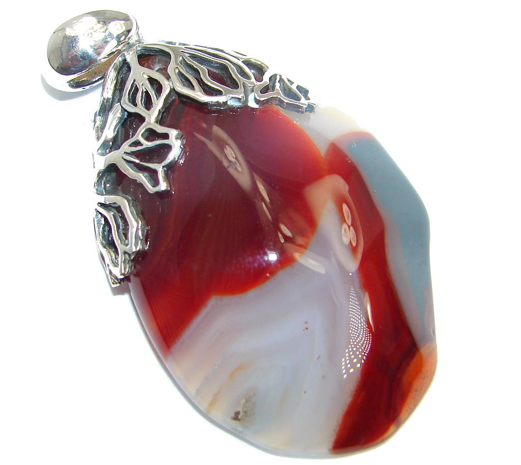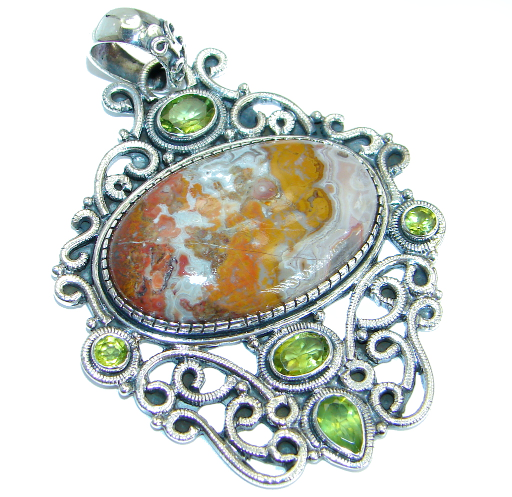 Amazing genuine Crazy Lace Agate .925 Sterling Silver handmade Pendant