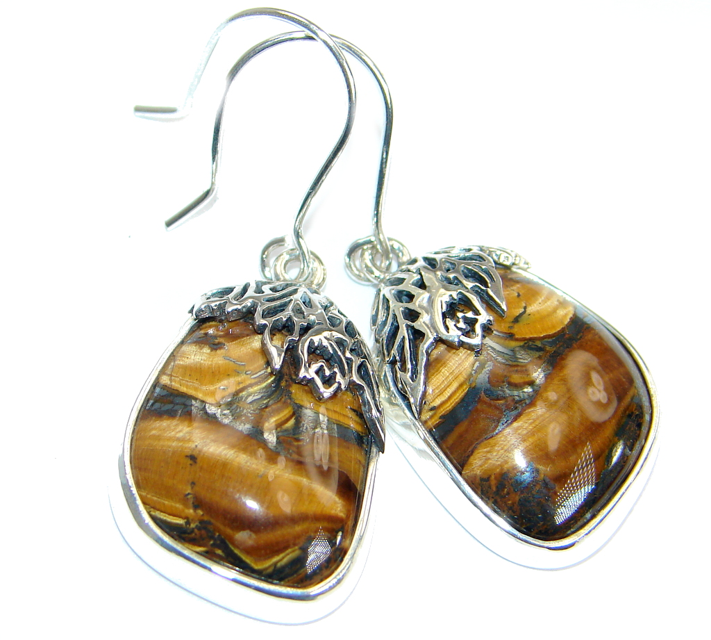 Genuine Golden Tigers Eye Oxidized .925 Sterling Silver handmade Earrings