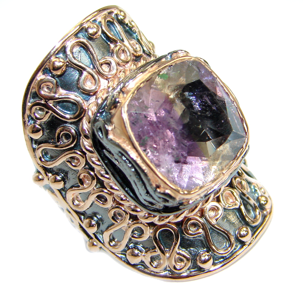 Amazing genuine Amethyst Gold Rhodium over .925 Sterling Silver ring s. 6 3/4
