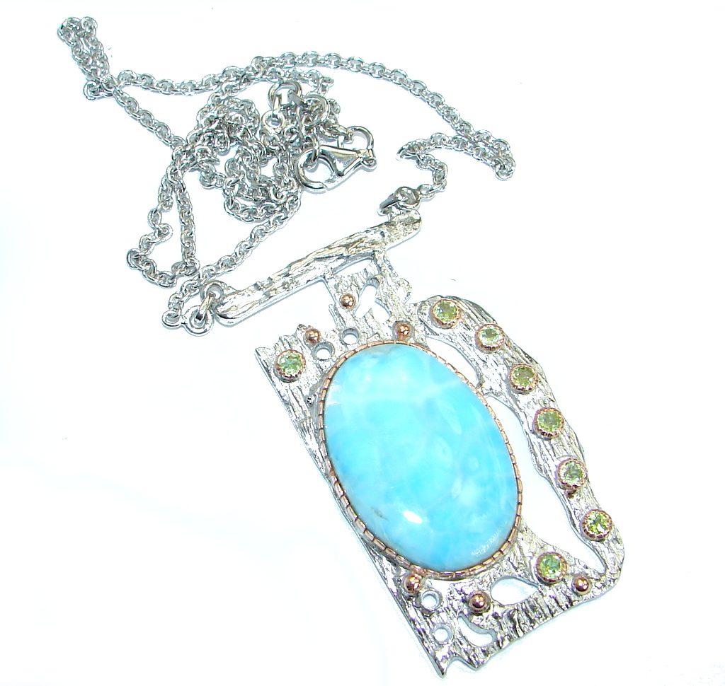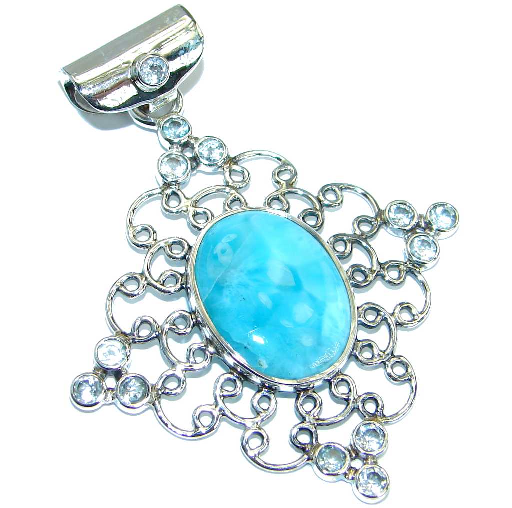 Bold Great quality Beautiful genuine Larimar .925 Sterling Silver handmade pendant