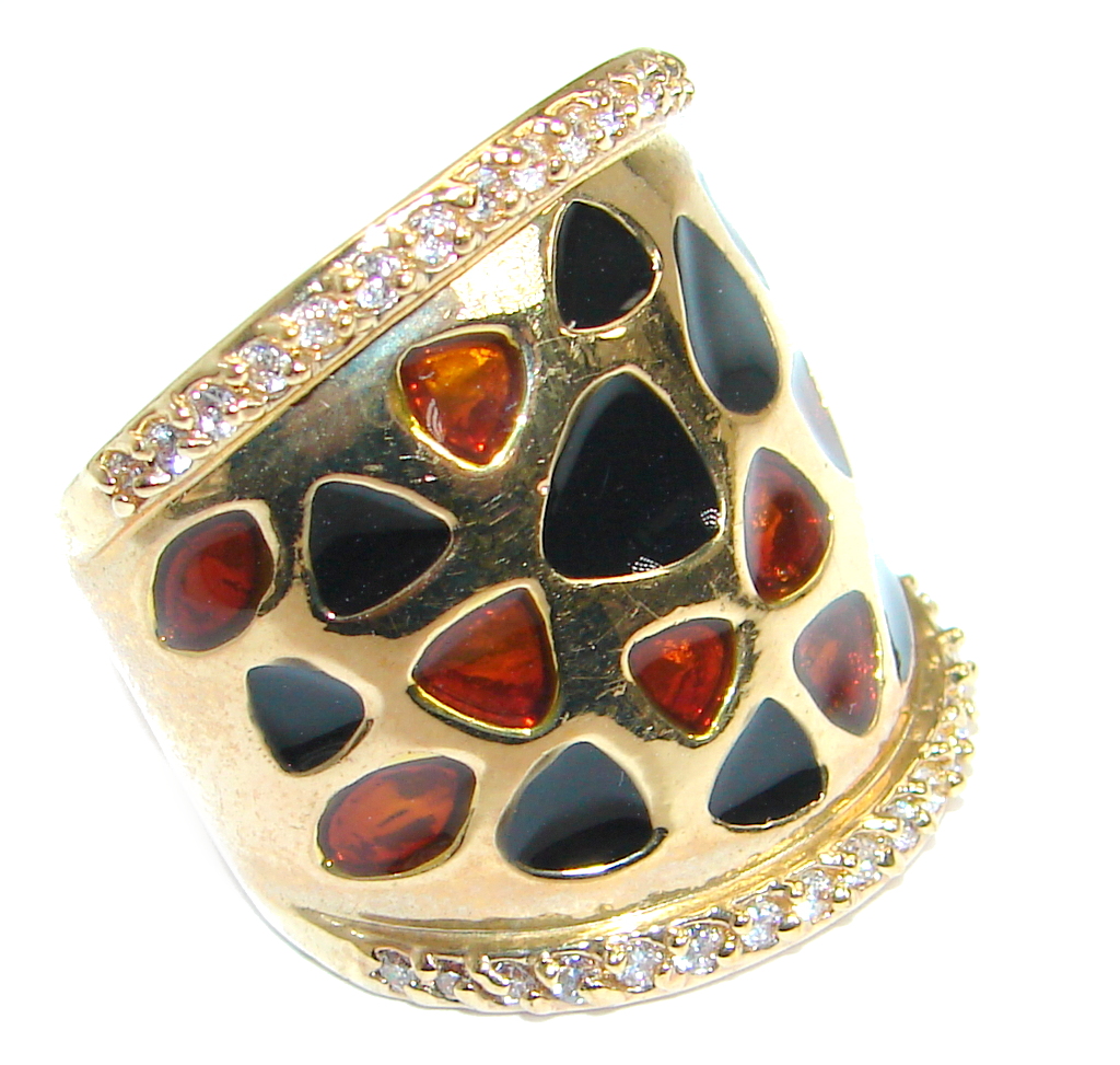 Magic Golden Cubic Zirconia .925 Sterling Silver handmade Ring s. 7 1/2