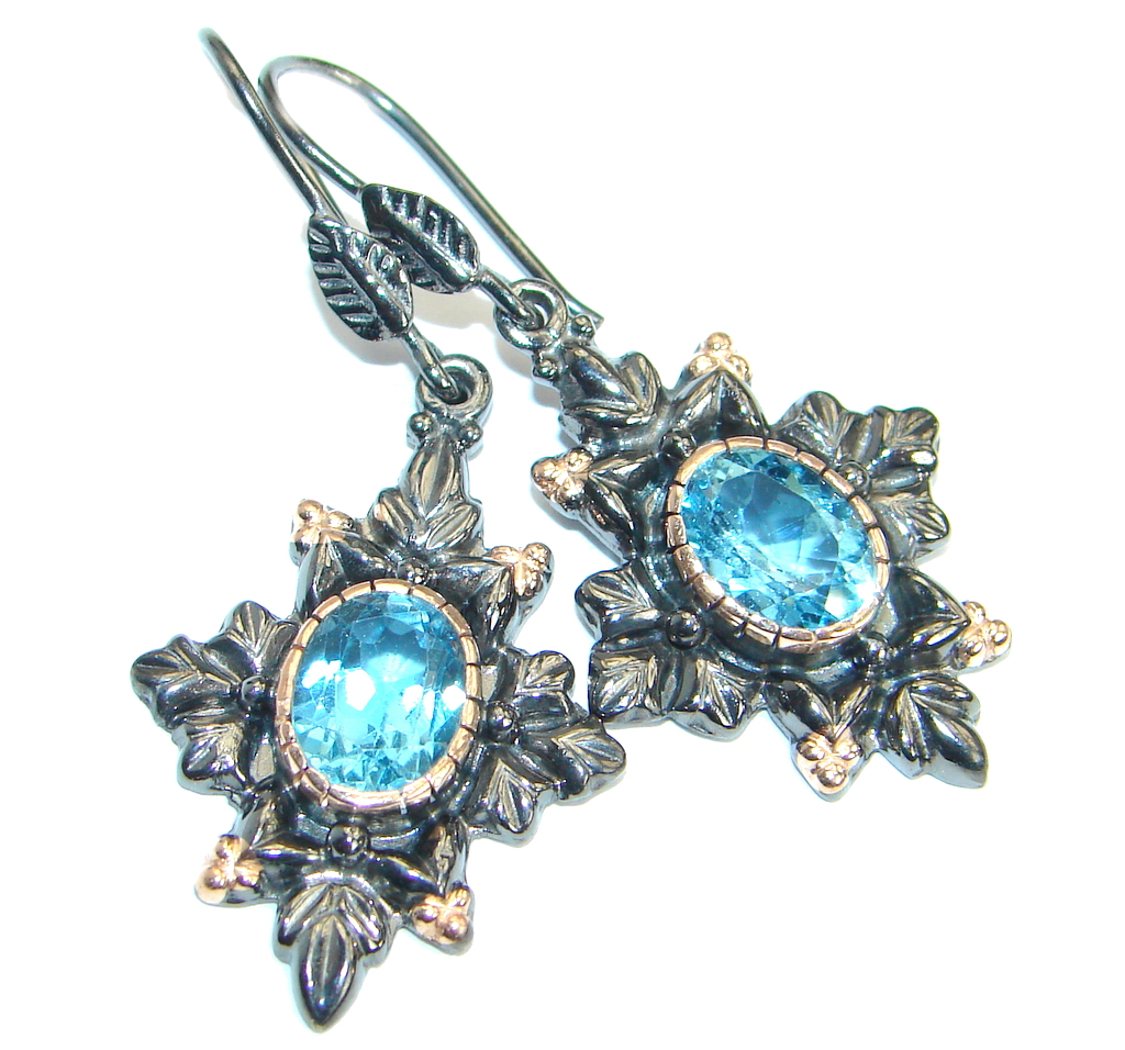 Vintage Design Swiss Blue Topaz Gold over .925 Sterling Silver earrings