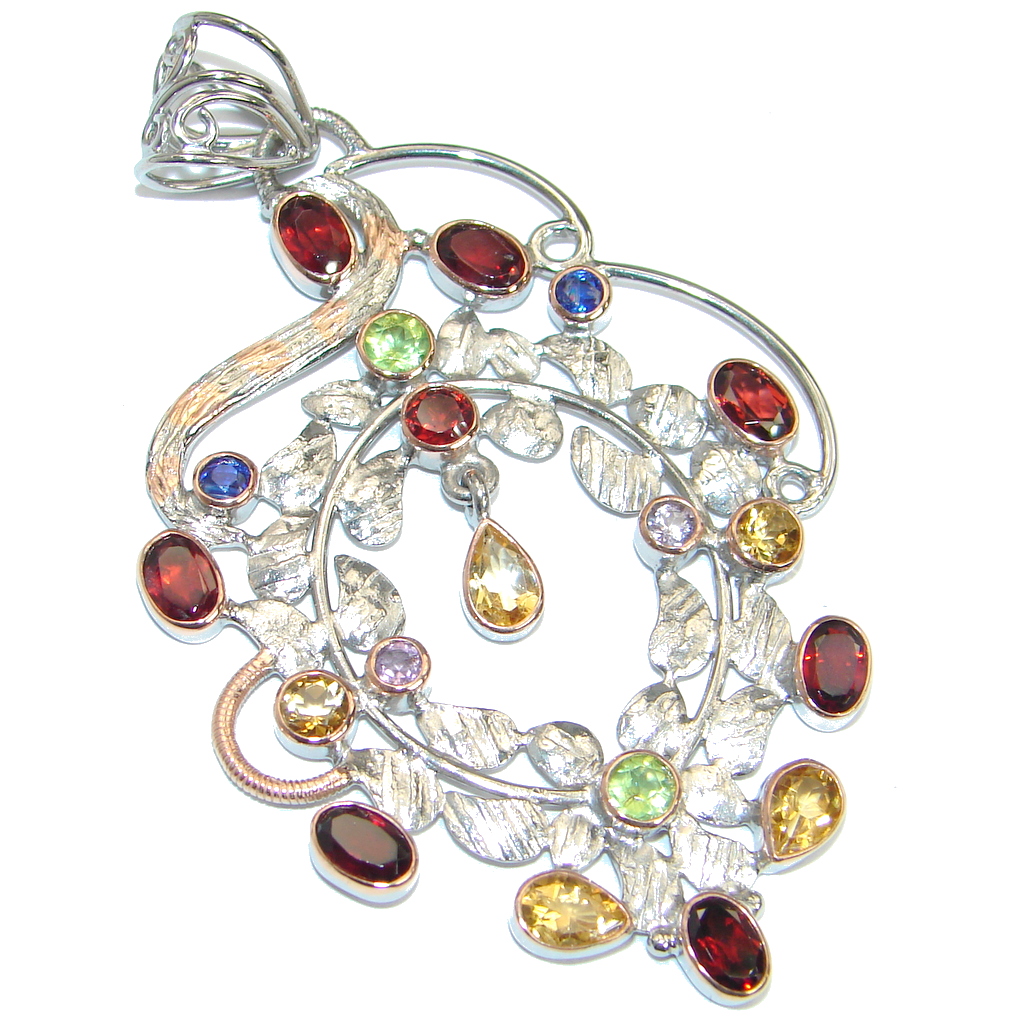 Large Aura Of Beauty Genuine Multigem .925 Sterling Silver Pendant