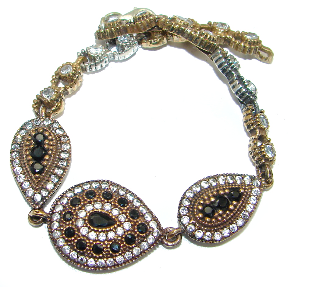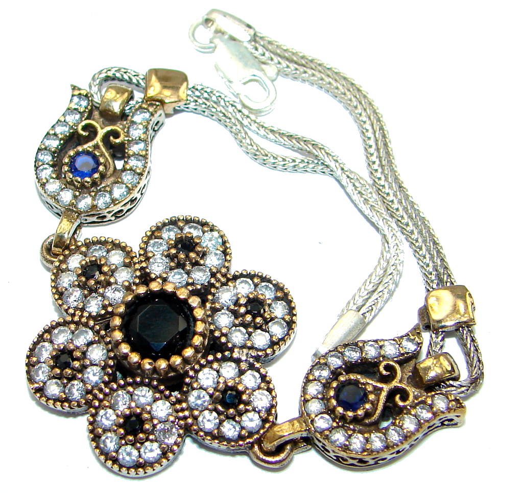Victorian Style created Sapphire & White Topaz Sterling Silver Bracelet