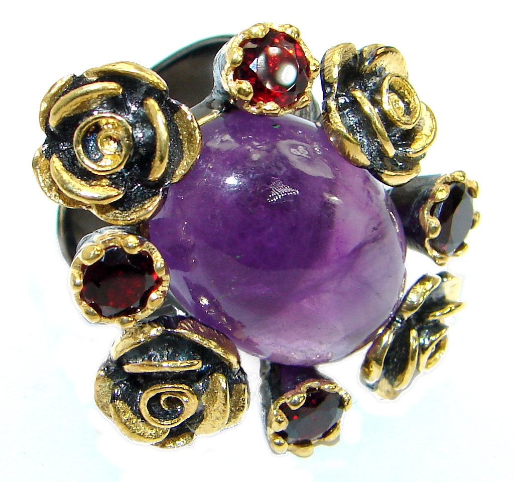 Authentic Amethyst .925 Sterling Silver handmade Ring size 7 adjustable