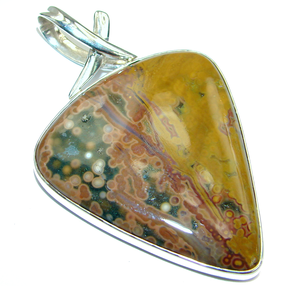 One of the kind Natural Ocean Jasper .925 Sterling Silver handmade Pendant