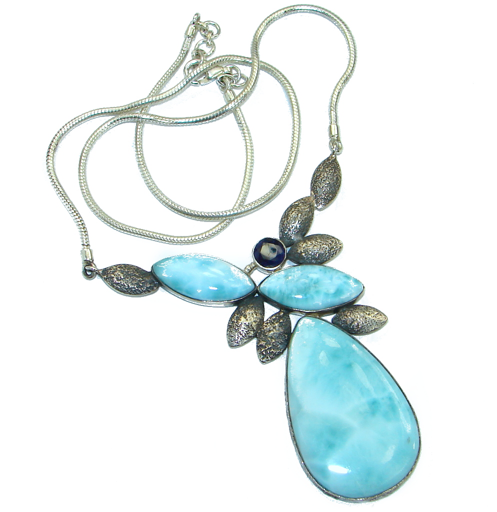 Nature inspired Sublime Larimar oxidized .925 Sterling Silver handmade necklace