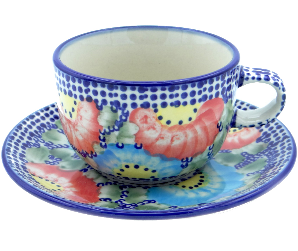 SilverrushStyle - Polish Pottery Teacup & Saucer - Wonderful Garden Collection