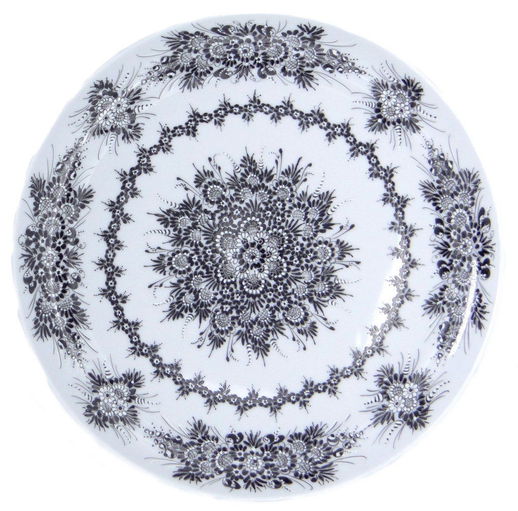 SilverrushStyle Large Porcelain Dinner Plate - Black Flower Collection