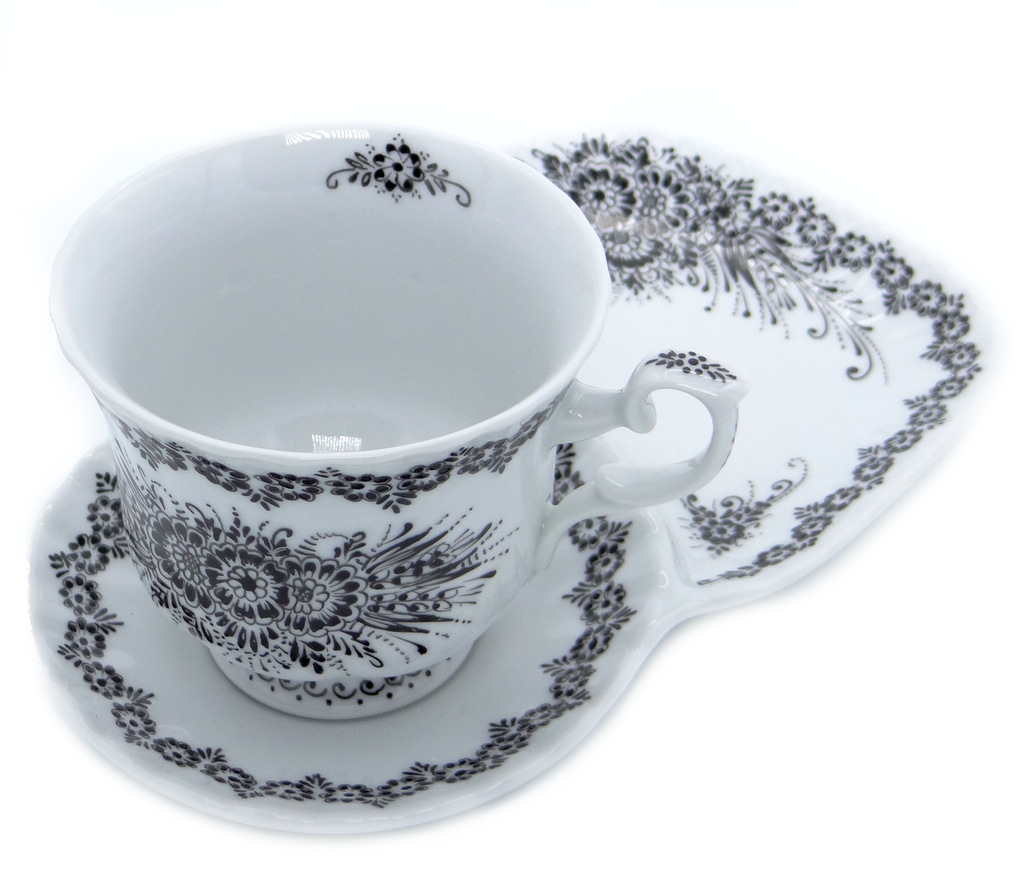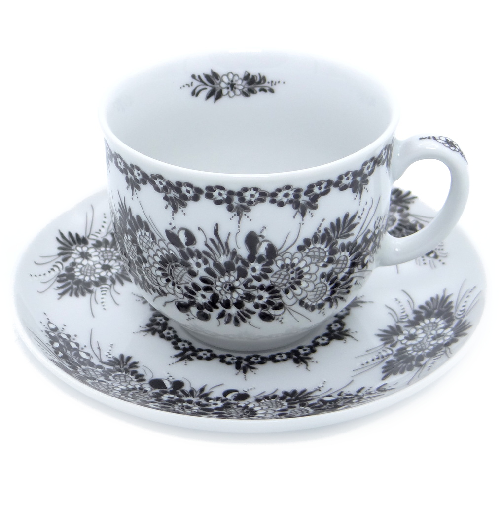 SilverrushStyle - Teacup & Dessert Saucer Porcelain - Black Flower Collection