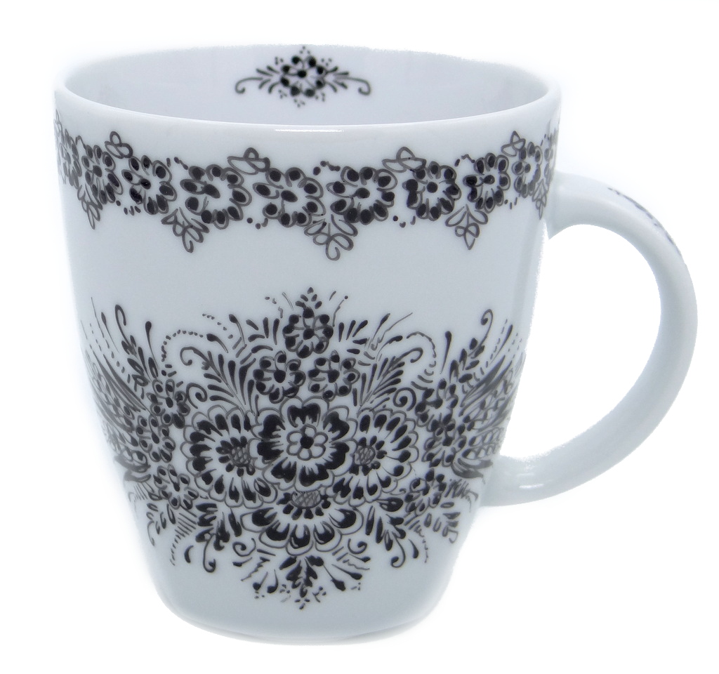 SilverrushStyle - Polish Porcelain Mug - Black Flower Collection