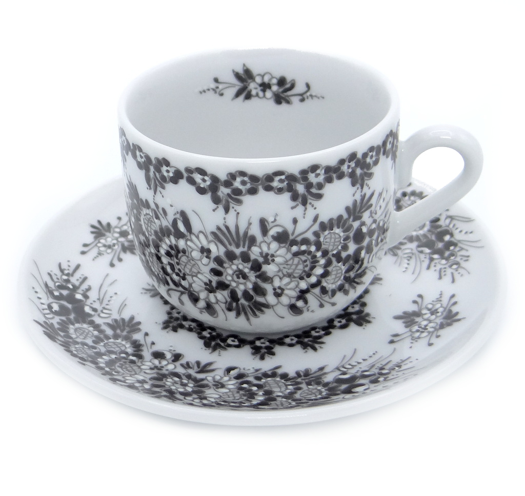 Entirely Hand painted Porcelain Espresso Cup and Saucer Black Flower Collection