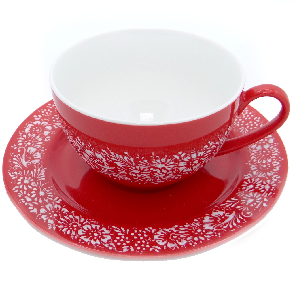 SilverrushStyle - Teacup & Saucer Porcelain - Red Flower Collection