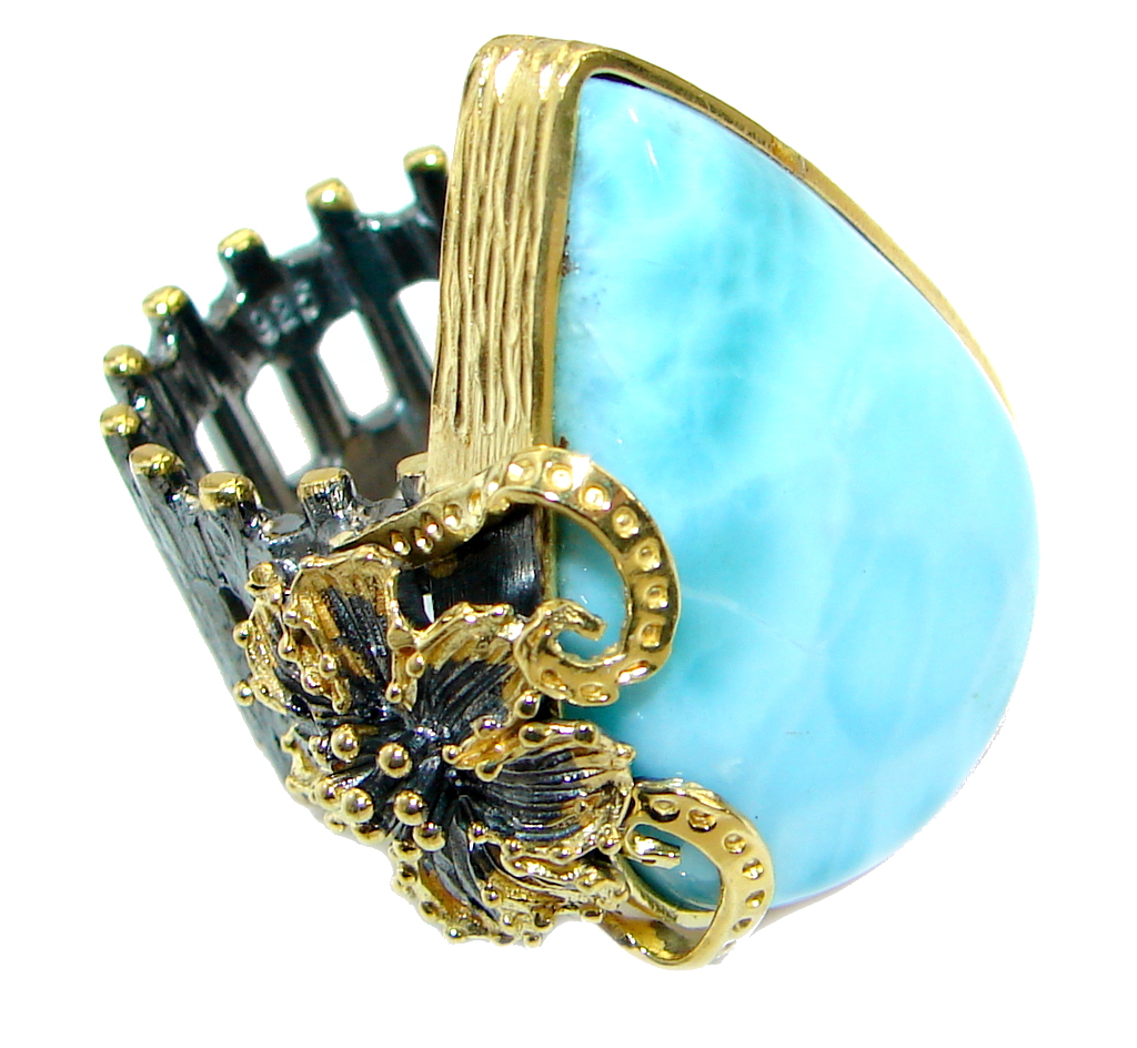 Genuine Larimar Gold over .925 Sterling Silver handcrafted Ring s. 8 adjustable
