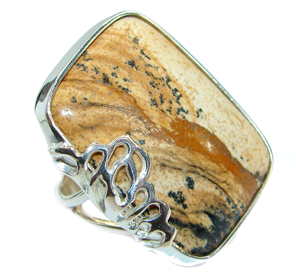 Picture Jasper .925 Sterling Silver handmade Ring s. 7 adjustable