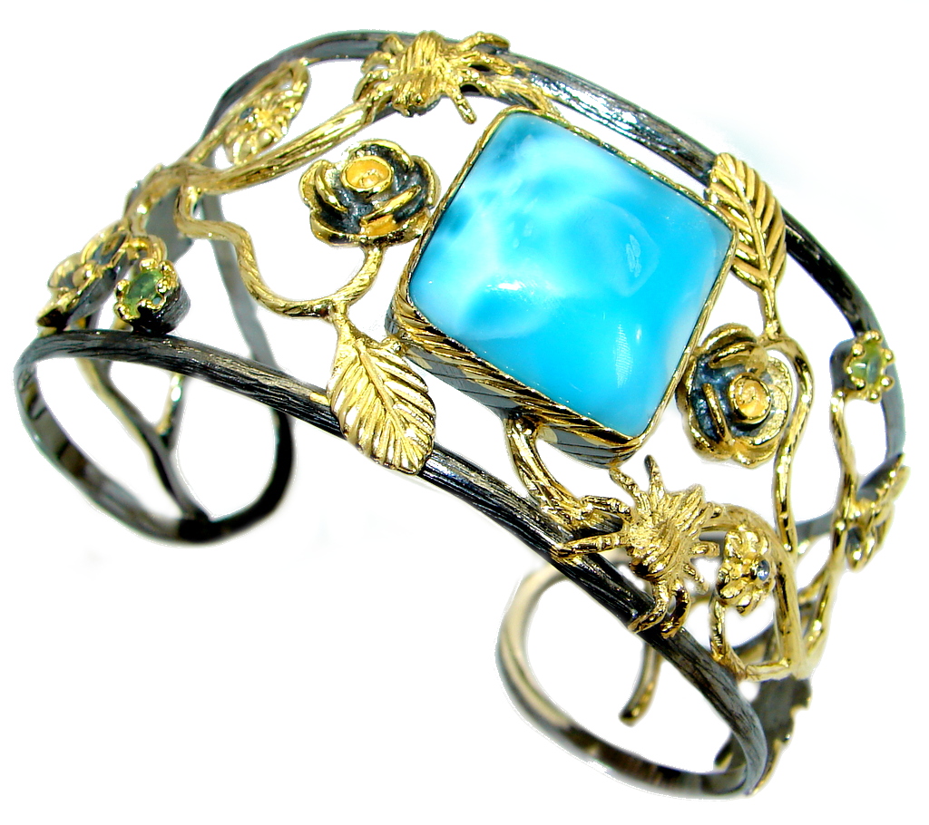 Blue Harmony genuine Larimar .925 Sterling Silver handcrafted Bracelet / Cuff