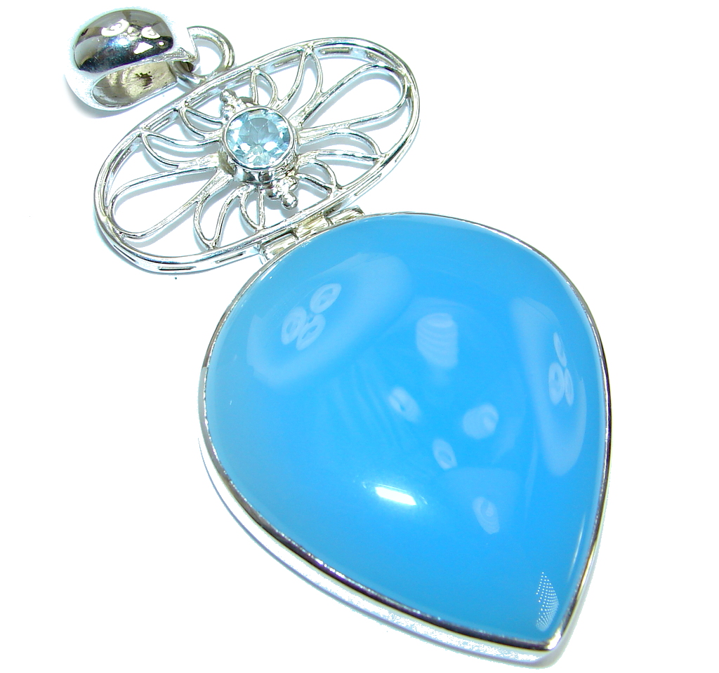 Blue Aura Chalcedony Agate Swiss Blue Topaz .925 Sterling Silver handmade Pendant