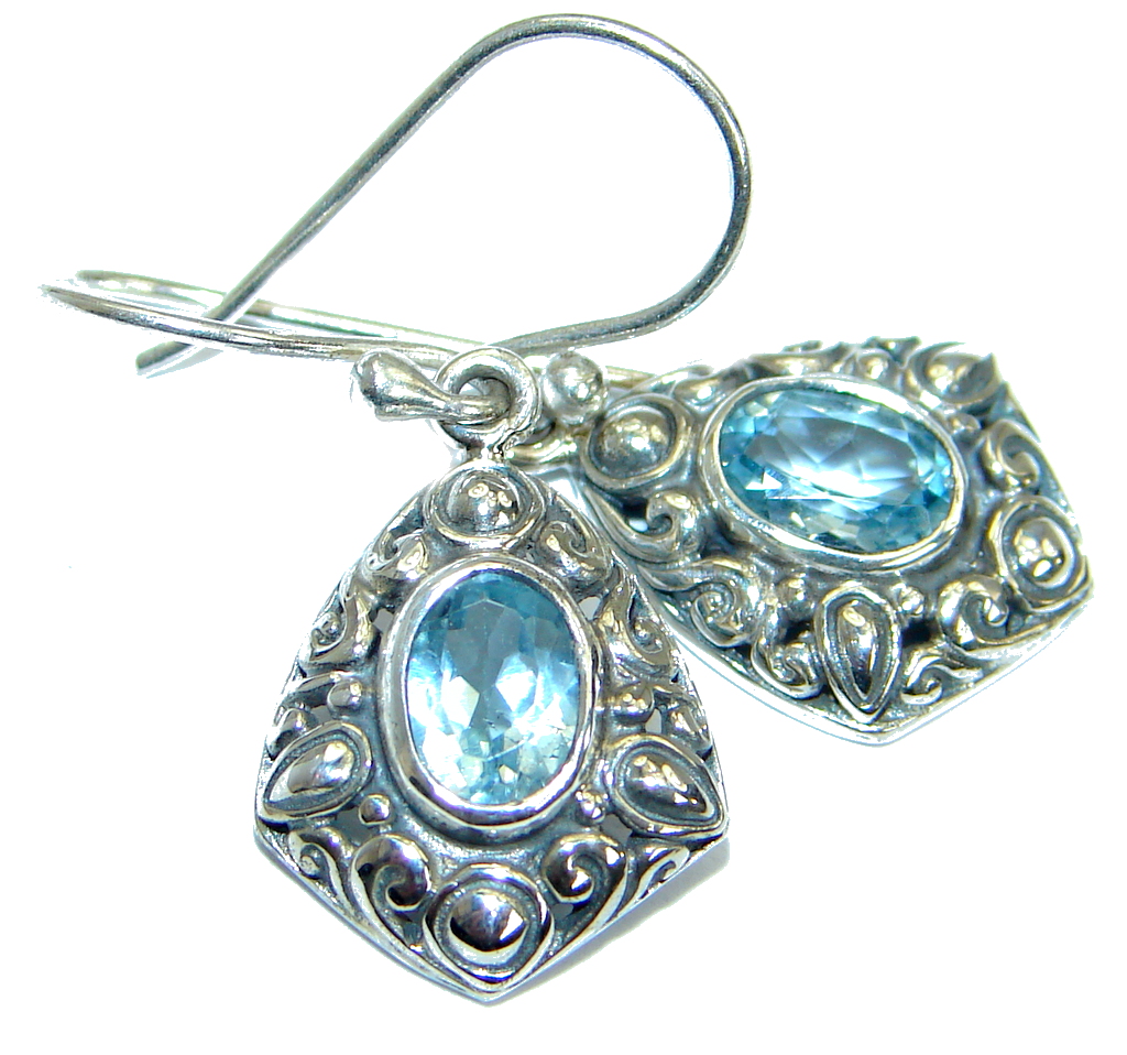 Rich Design Authentic Swiss Blue Topaz .925 Sterling Silver earrings