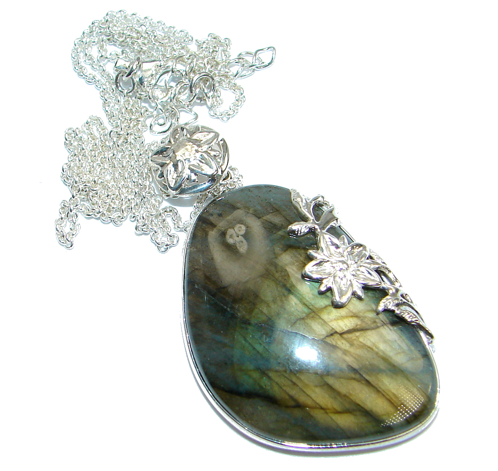Classy Fire Labradorite handmade .925 Sterling Silver entirely handcrafted necklace