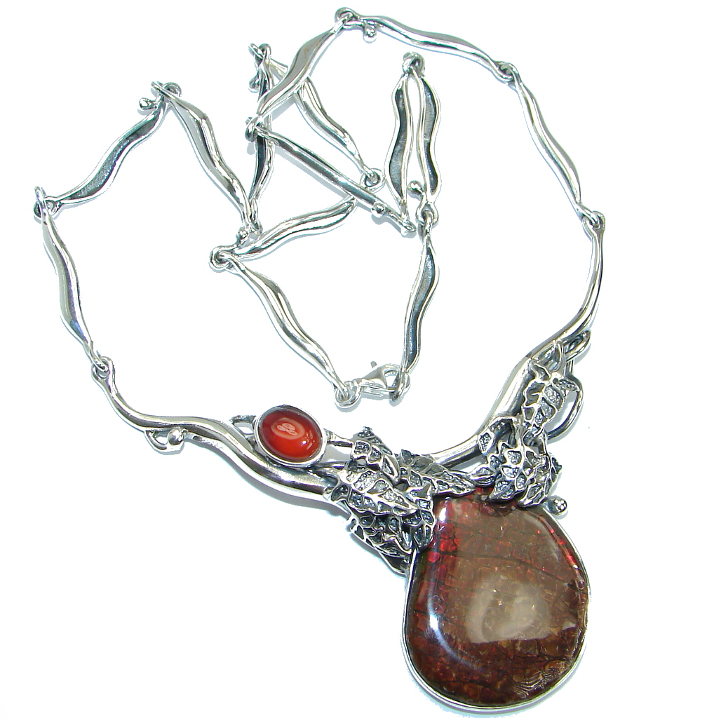 One of the kind Natural Canadian Ammolite .925 Sterling Silver handmade necklace