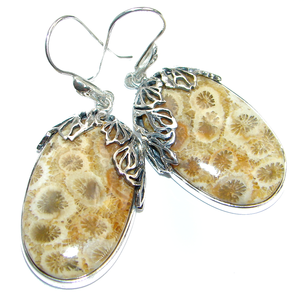Genuine Fossilized Coral .925 Sterling Silver handmade earrings