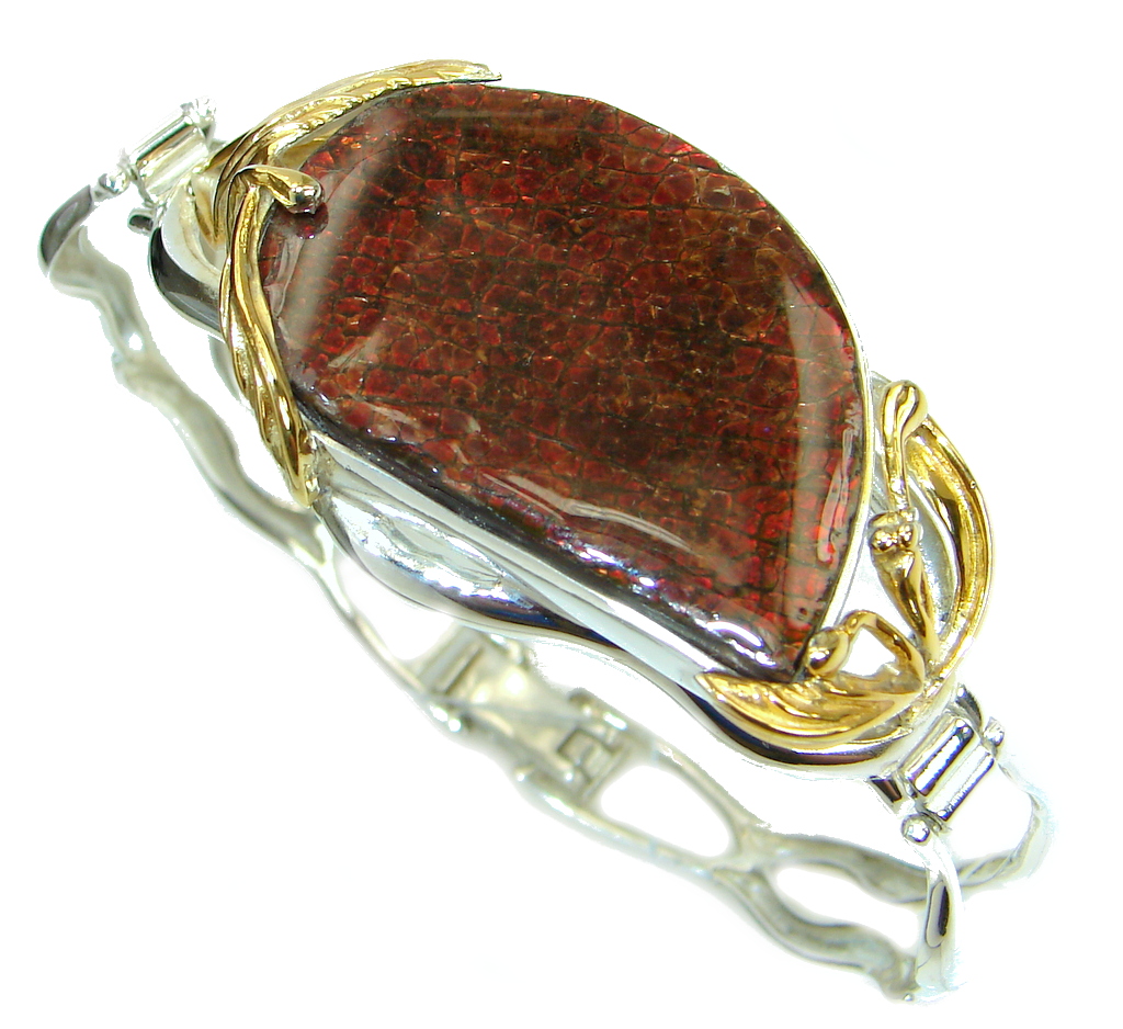 Jumbo Beautiful New Design Red Ammolite Two Tones .925 Sterling Silver handcrafted Bracelet