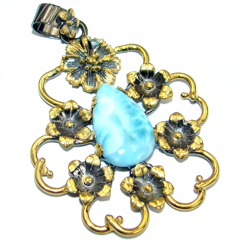Genuine Larimar Gold over .925 Sterling Silver handmade pendant