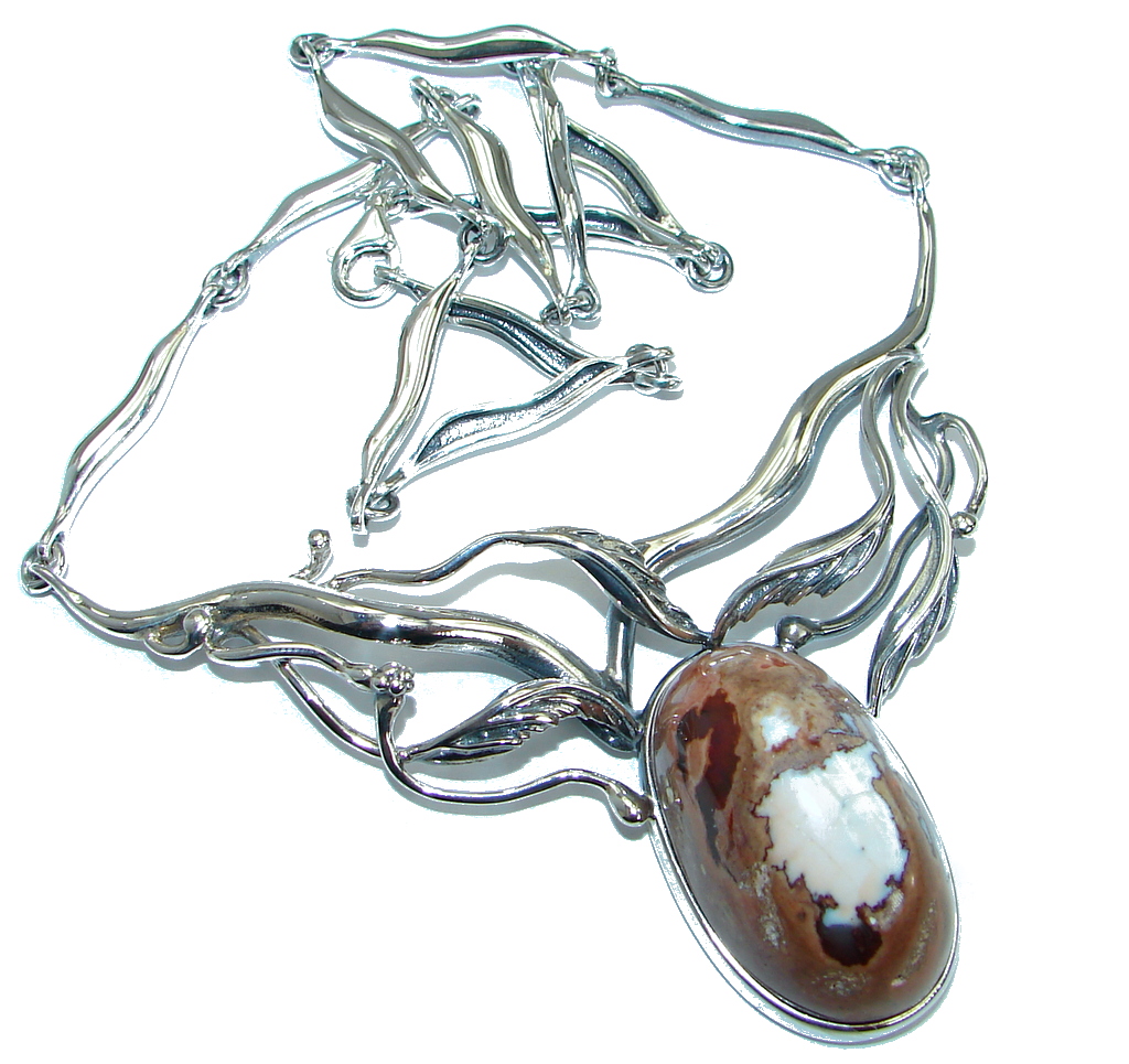 Large Master Piece genuine Mexican Opal .925 Sterling Silver brilliantly handcrafted necklace