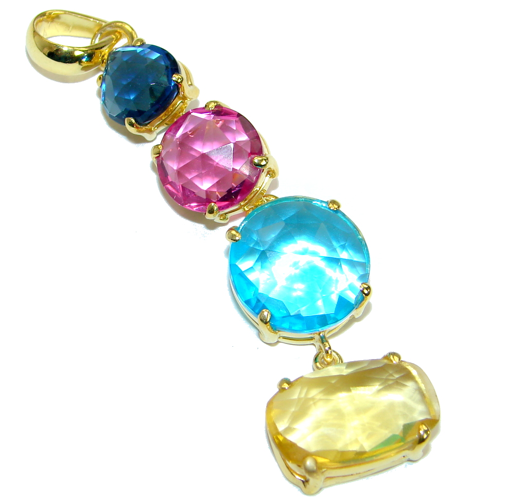 Amazing Multicolored Quartz Gold over .925 Sterling Silver Pendant