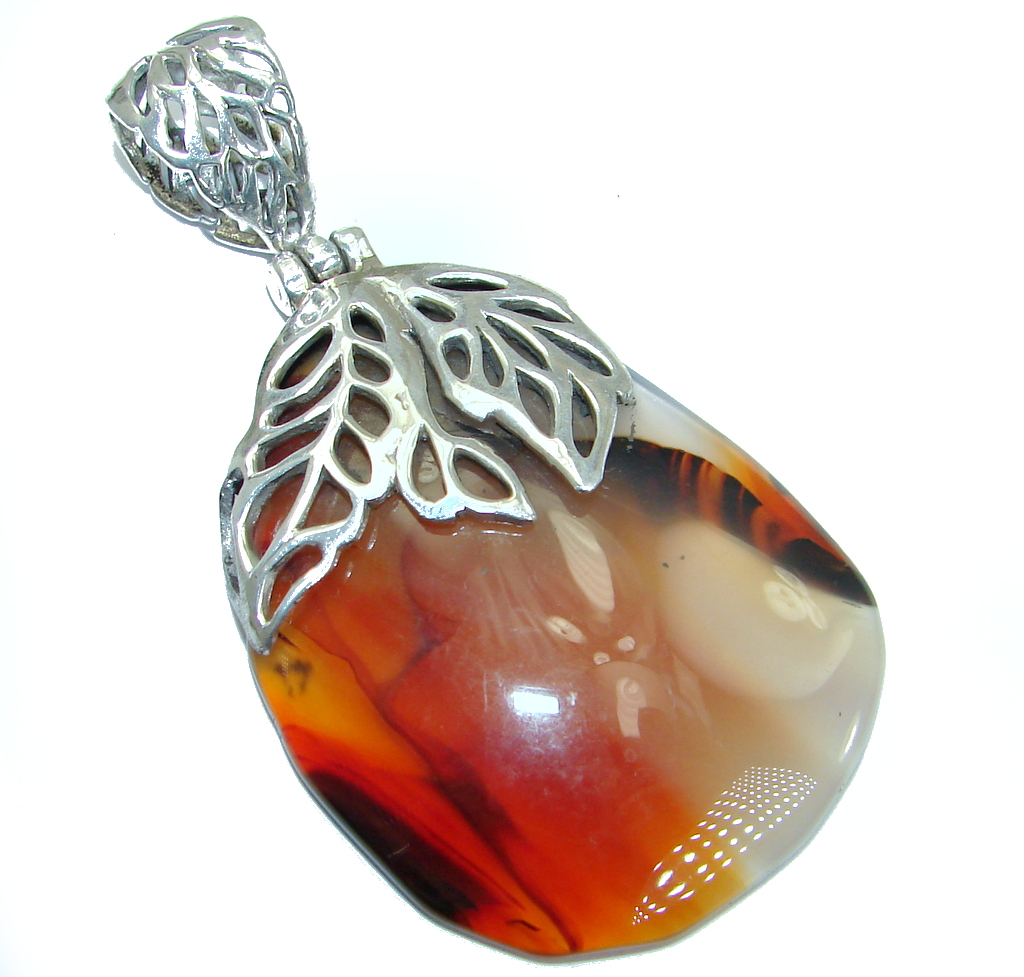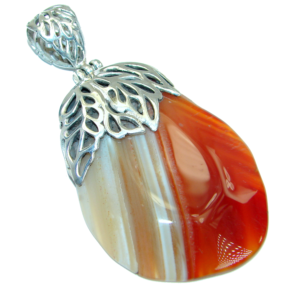 Aura Of Beauty Genuine Carnelian Agate .925 Sterling Silver handmade necklace