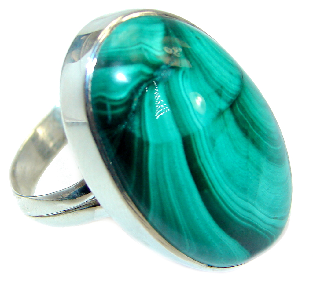 Natural Sublime quality Malachite .925 Sterling Silver handcrafted ring size 6 adjustable