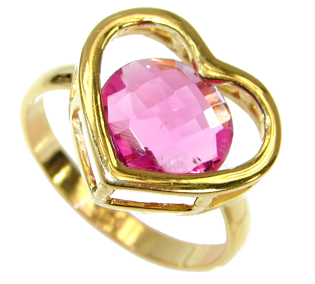 Sweet Heart Pink Topaz 14 K Gold over .925 Silver handcrafted Ring s. 7