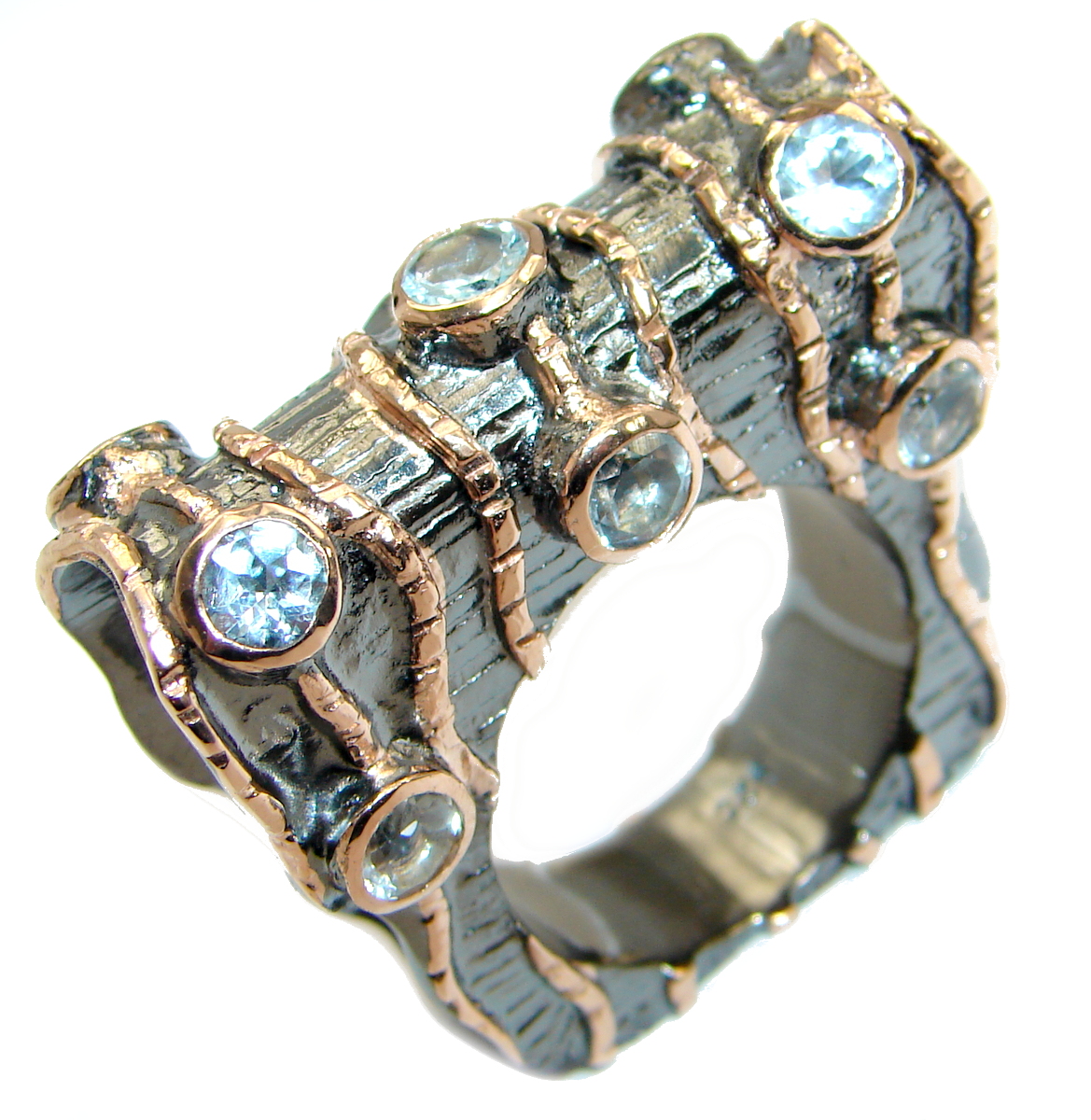 Huge Energazing Swiss Blue Topaz Rose Gold over .925 Sterling Silver handmade Ring size 7