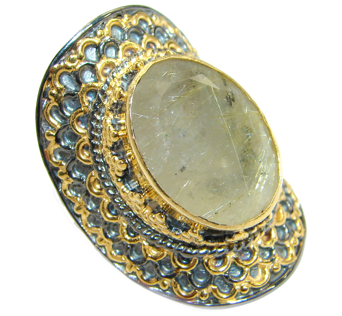 Golden Rutilated Quartz .925 Sterling Silver handcrafted Ring Size 7 adjustable