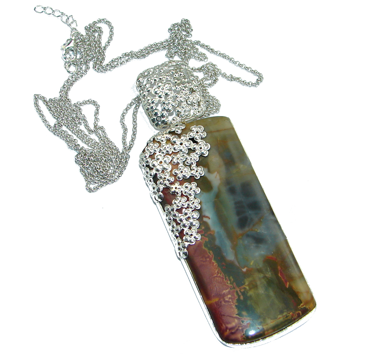 Huge Exclusive Imperial Jasper oxidized .925 Sterling Silver handcrafted Pendant